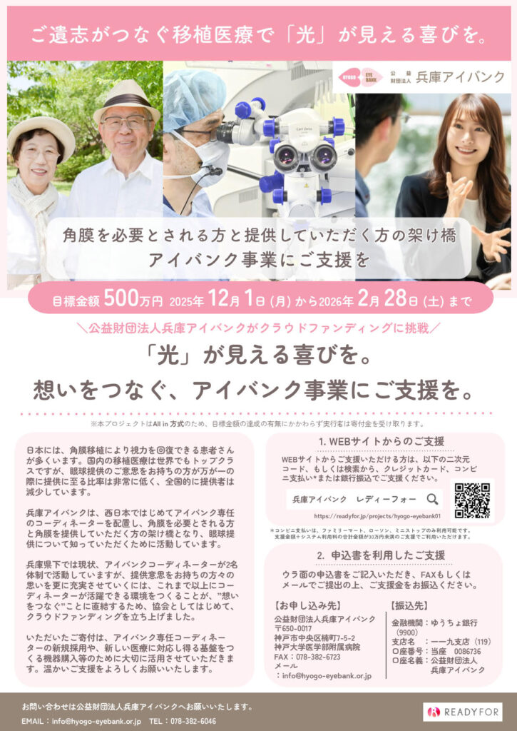 タイトル:「光」が見える喜びを。想いをつなぐ、アイバンク事業にご支援を。